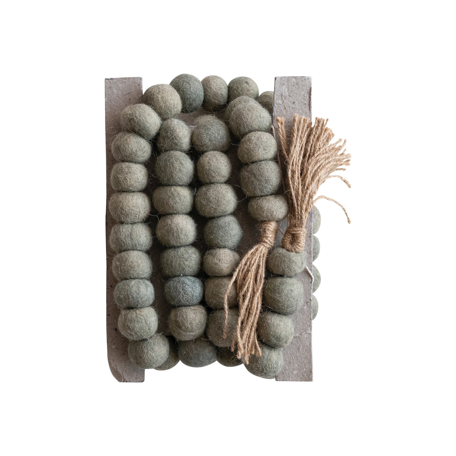 Catalog Name: 72"L x 1"H Handmade Wool Felt Ball Garland w/ Jute Tassels, Grey