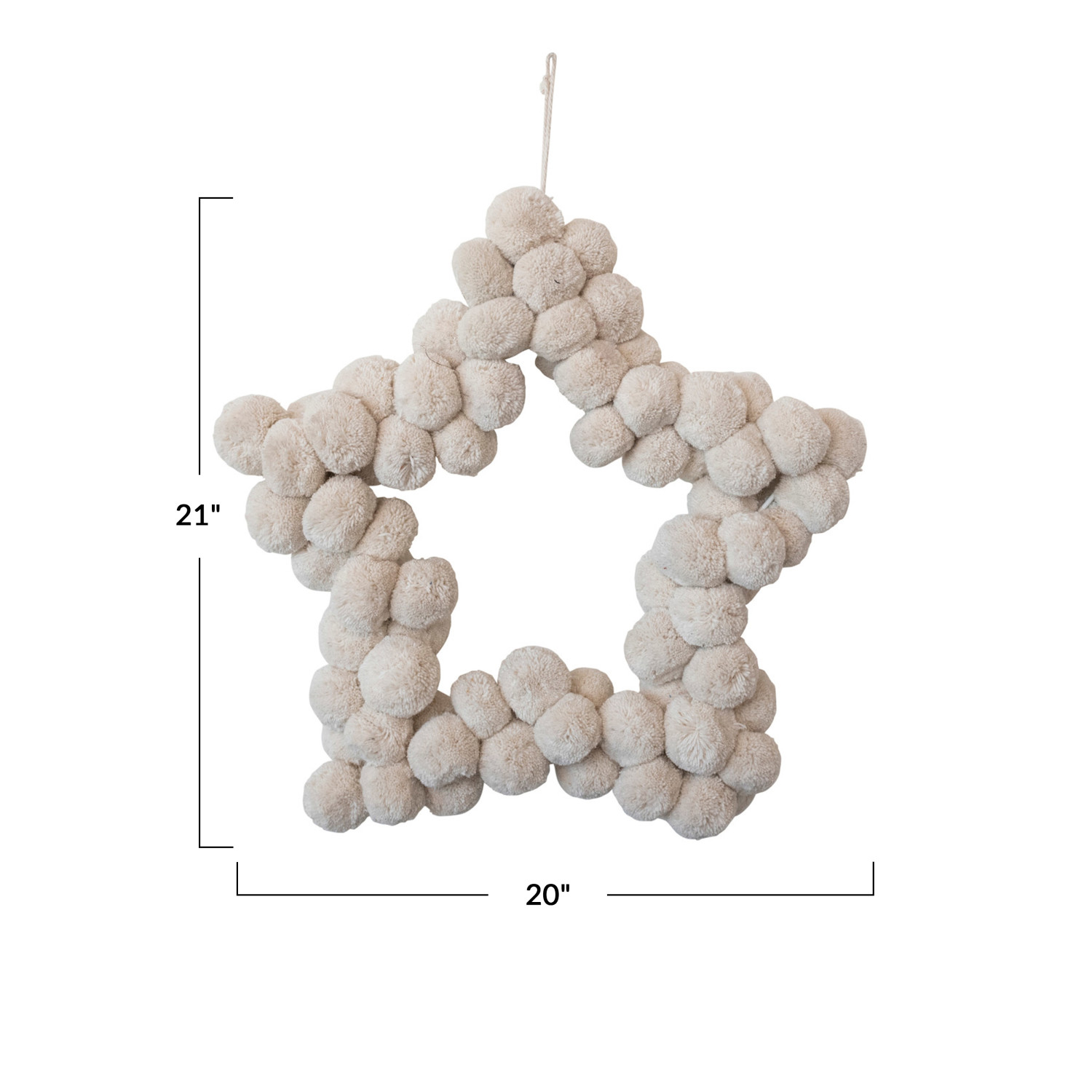 Catalog Name: 21"L x 20"W Handmade Metal & Wool Pom Pom Star Shaped Wreath, Natural