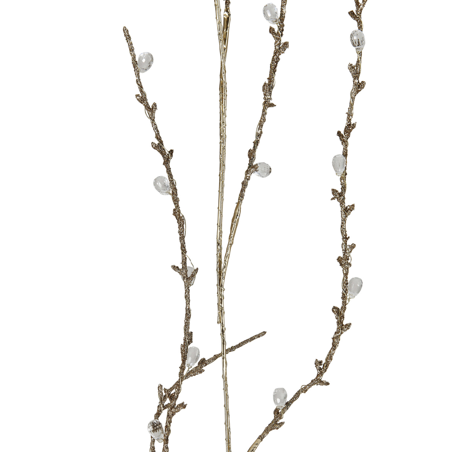 Faux Twig Garland w/ Acrylic Jewels & Glitter, Gold Finish