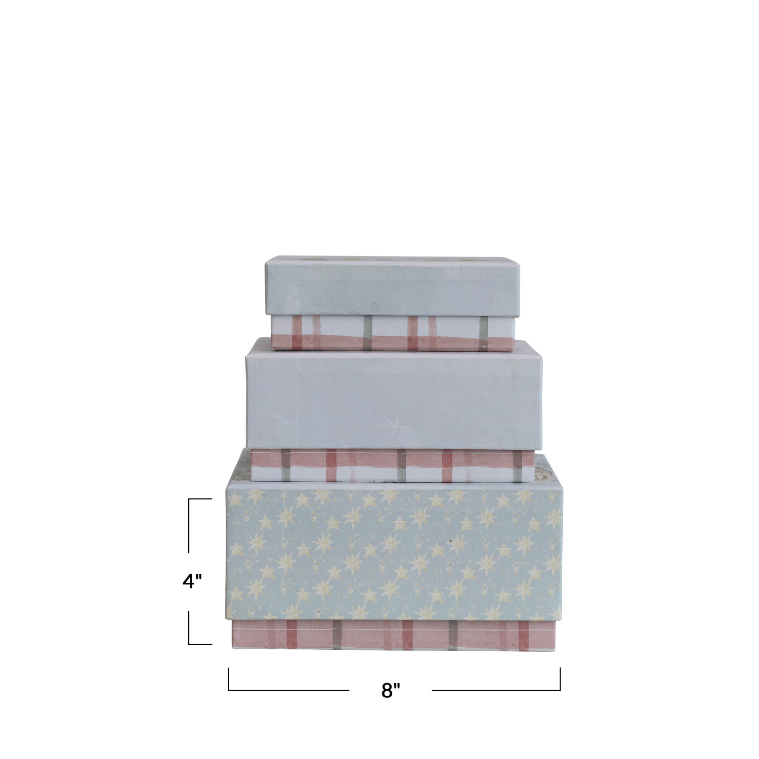 Printed Recycled Paper Gift Box, Multi Color, Set of 3