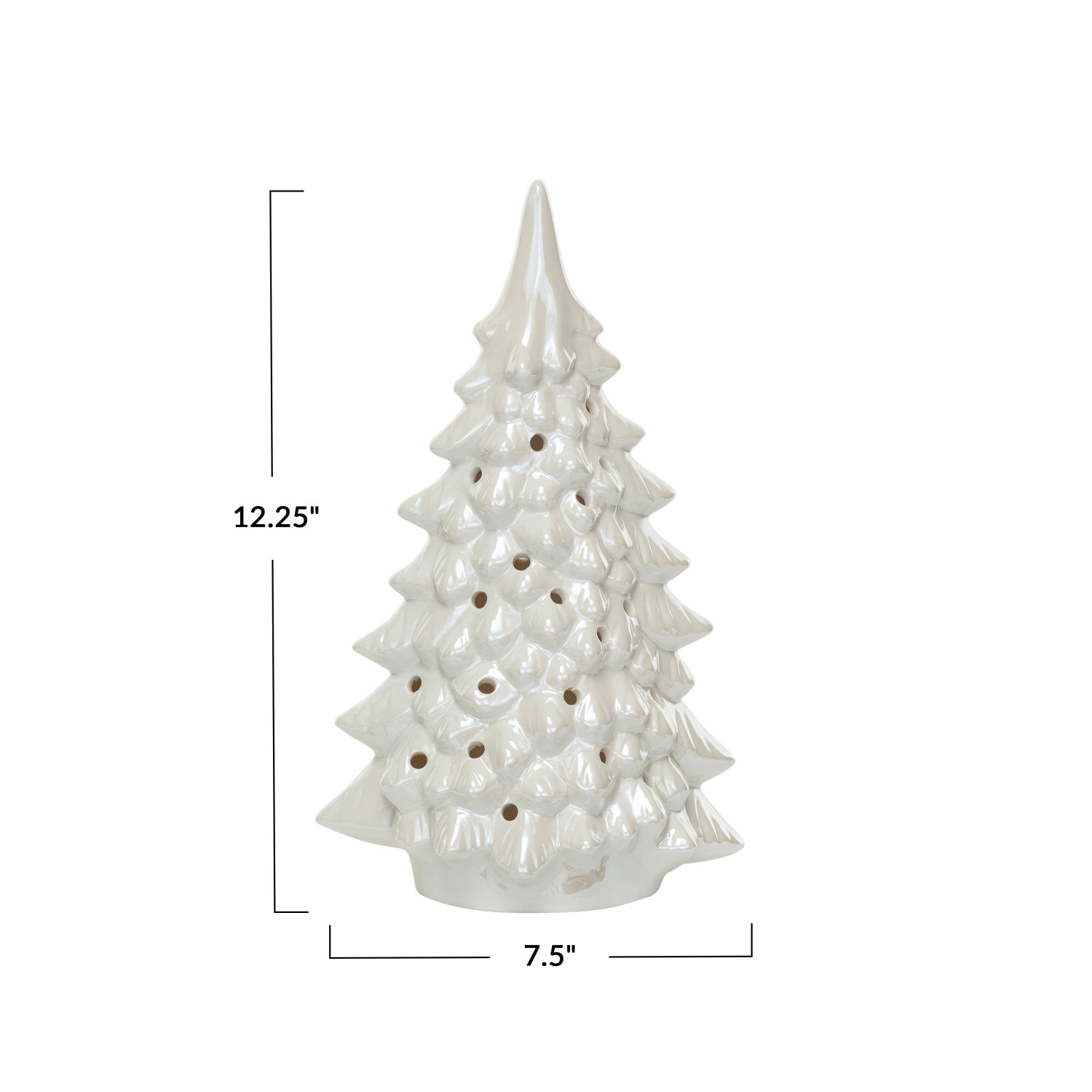 Catalog Name: 7-1/2"L x 5-1/4"W x 12-1/4"H Stoneware LED Tree w/ Cut-Outs, Iridescent Finish, Cream Color (Batteries Included)