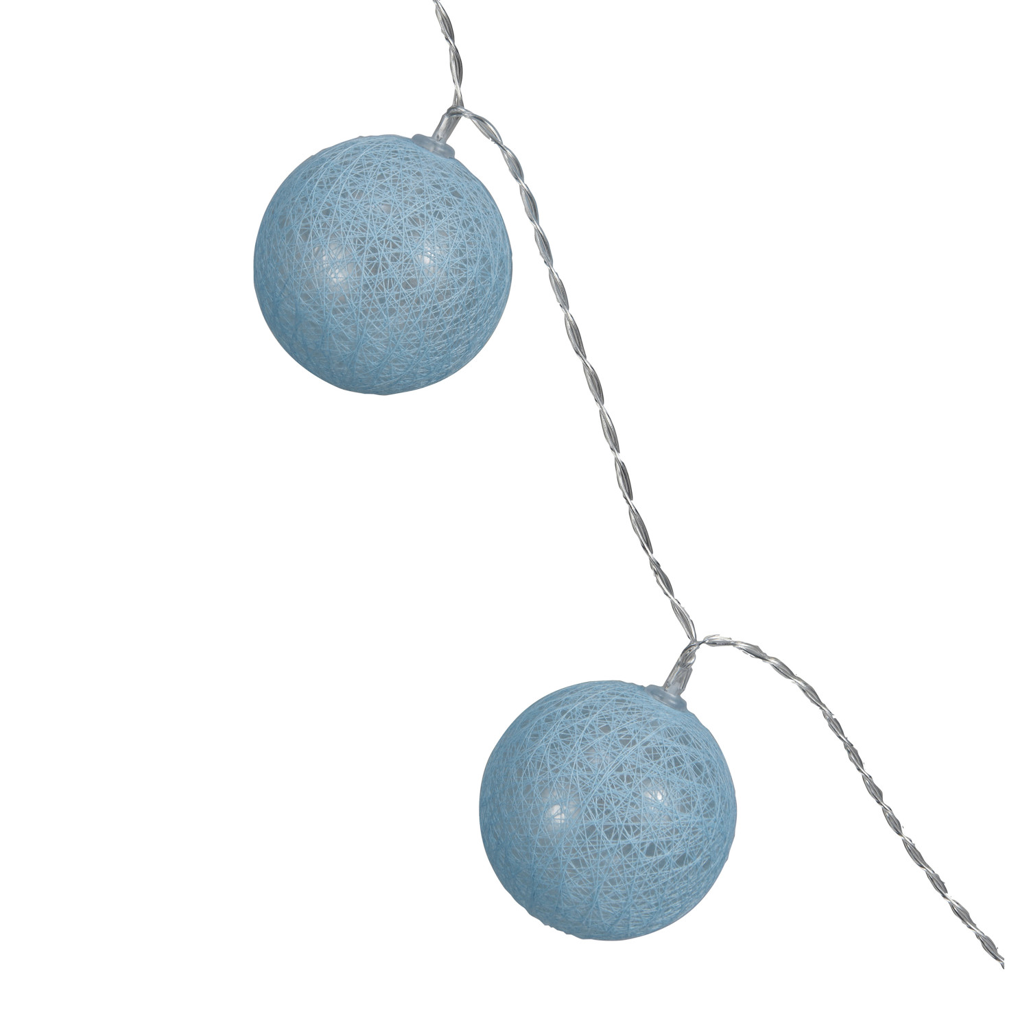 This set of fabric string ball lights with a plastic cord and 20 lights in blue is a colorful and fun piece that will brighten up any space. The string lights' various colors create a joyful and happy ambiance. Fabric string balls give texture and flair to the string lights, producing a magnificent and distinctive display. 20 LED lights give shine to the string lights, making them stunning. A battery-operated construction makes the string lights easy to hang and move, making any display straightforward. The string lights are made of polycarbonate, polyester, and LED light, with a soft and flexible quality. They are easy to clean and maintain. The string lights measure 118 inches in length and 2.25 inches in height. This is a versatile and stylish piece that can be displayed in the bedroom, living room, or party. It is a playful piece to add some light and whimsy to the space. A colorful and fun set of fabric string ball lights with plastic cord and 20 lights in blue. A playful piece to add some light and whimsy to the bedroom, living room, or party. Requires 2-pcs AA batteries.