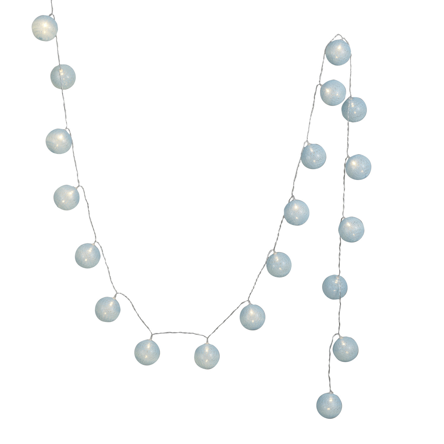 Catalog Name: 118"L x 2-1/4"H Plastic Ball LED String Light w/ 20 Lights, Blue (Requires 2-AA Batteries)
