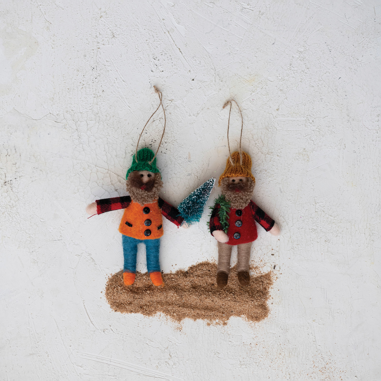 Catalog Name: 5-3/4"H Handmade Wool Felt Lumberjack w/ Tree/Wreath Ornament, Multi Color, 2 Styles