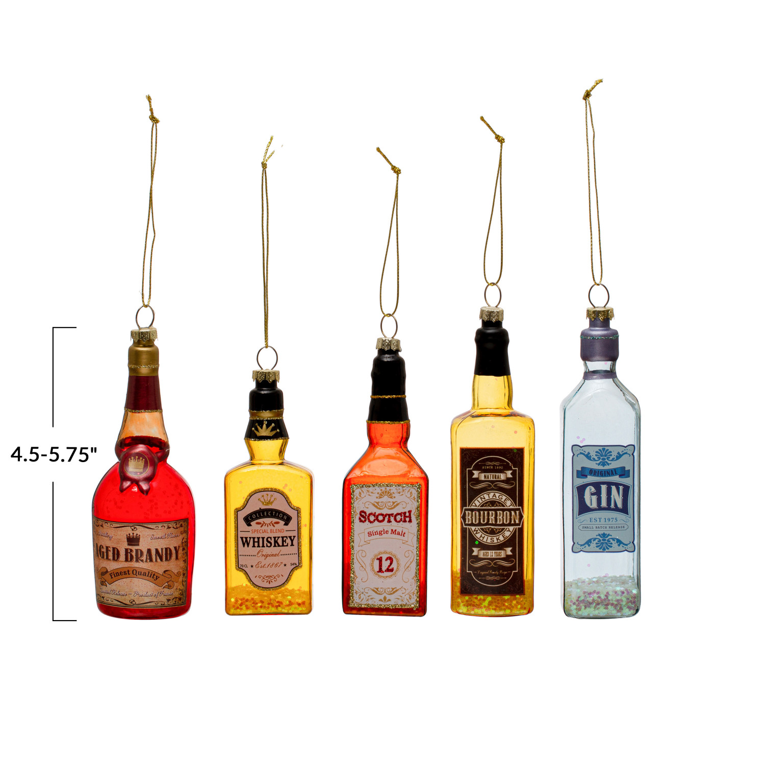 4-1/2"H - 5-3/4"H Glass Liquor Bottle Ornament w/ Glitter, 5 Styles
