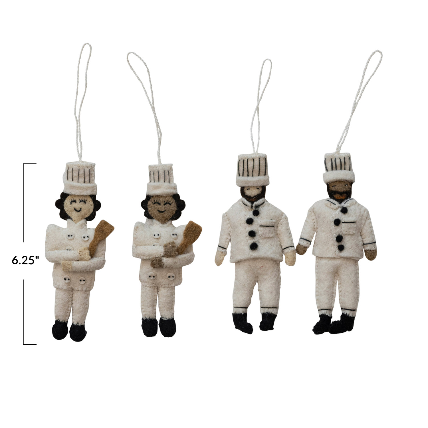 Catalog Name: 6-1/4"H Handmade Wool Felt Chef Ornament w/ Embroidery, Multi Color, 4 Styles