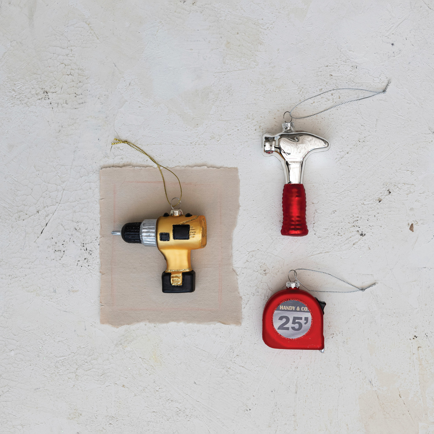 Glass Construction Tool Ornament w/ Glitter, 3 Styles