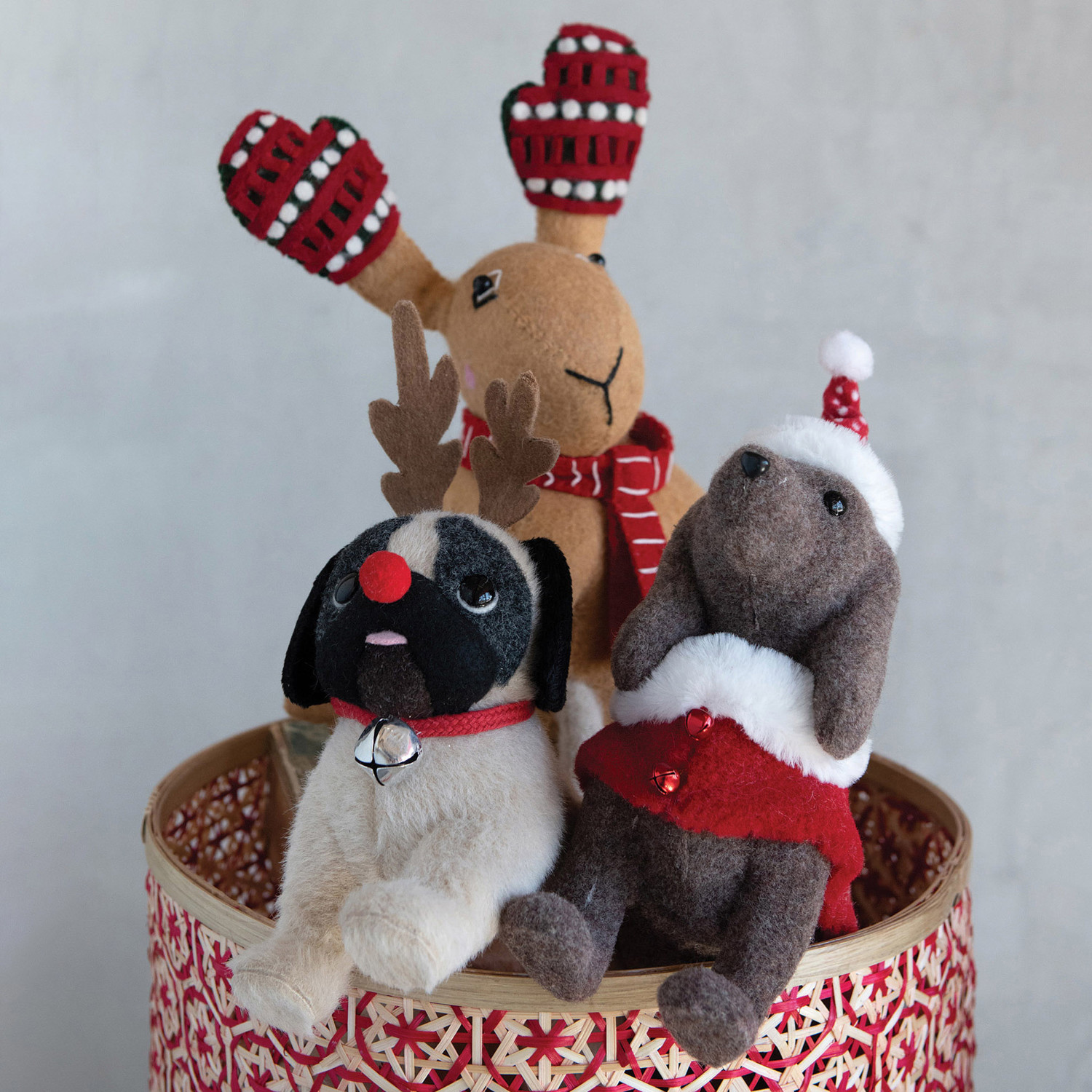 Catalog Name: 9"L x 4-1/2"W x 14-1/2"H Wool Felt Bunny Tree Topper w/ Scarf & Gloves ©