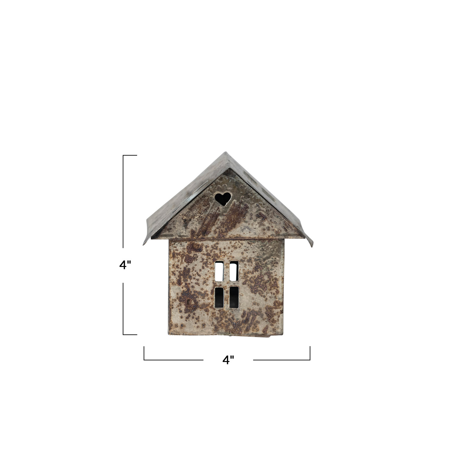 4"L x 3-3/4"W x 4"H Metal House, Antique Pewter Finish