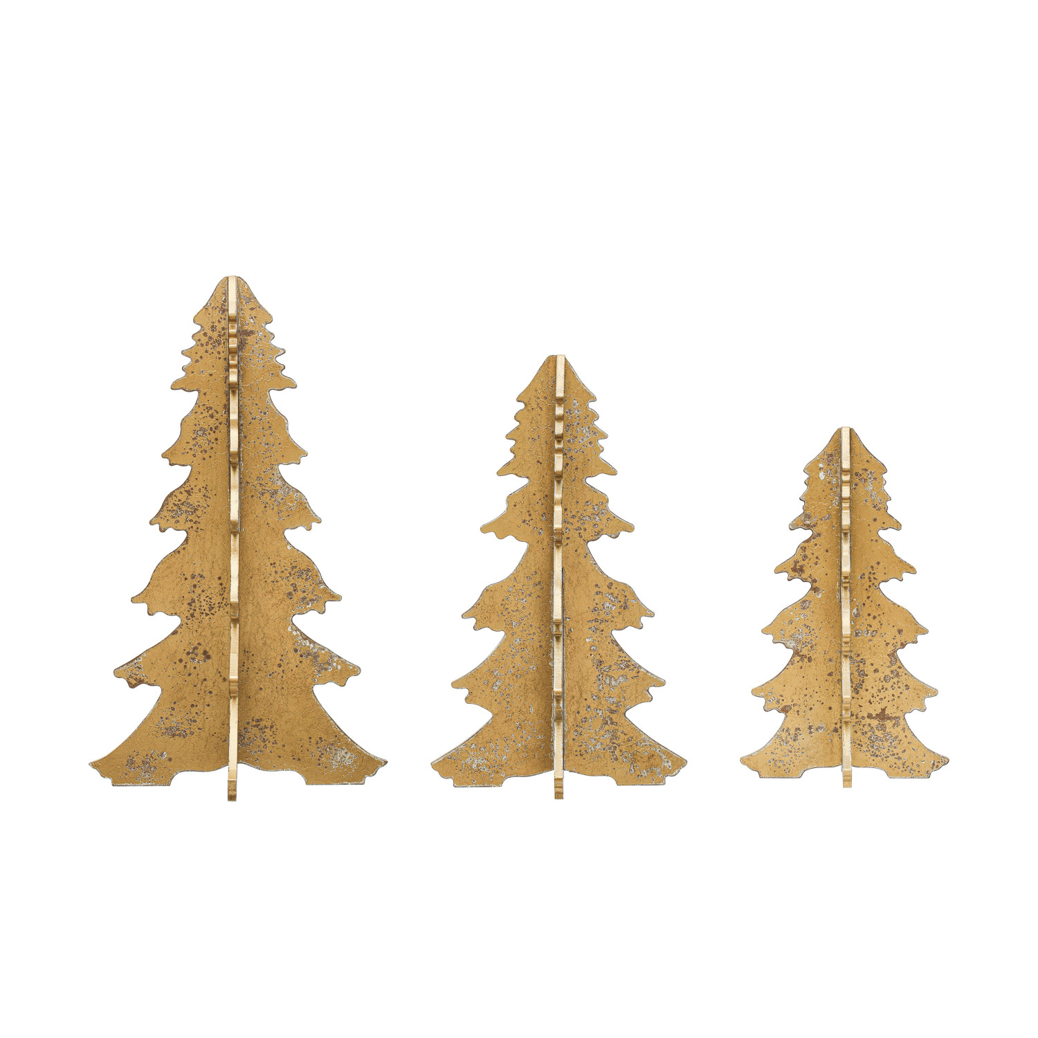 11-1/4" Round x 19"H MDF Interlocking Laser Cut Tree, Distressed Gold Finish, KD