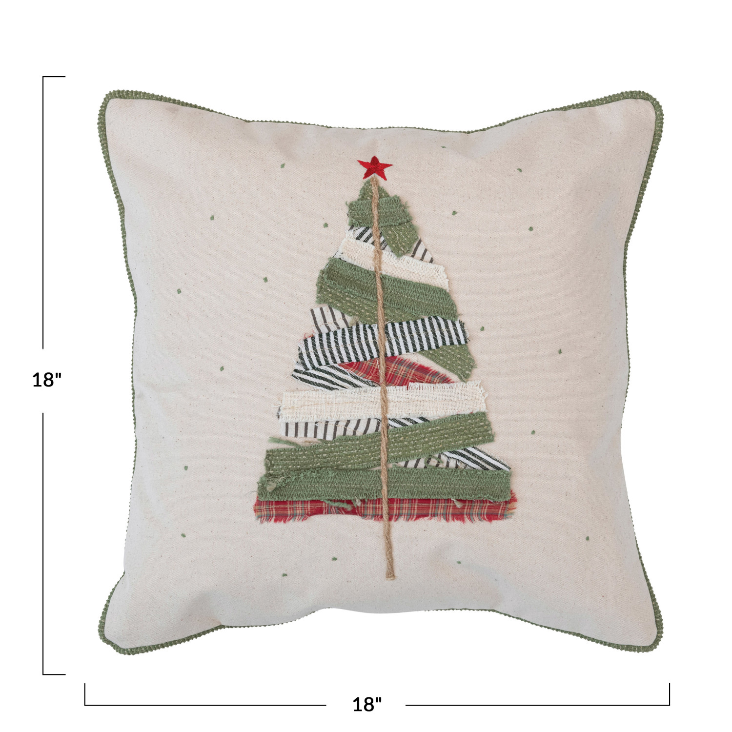 18" Square Cotton Pillow w/ Appliqued Tree, Multi Color