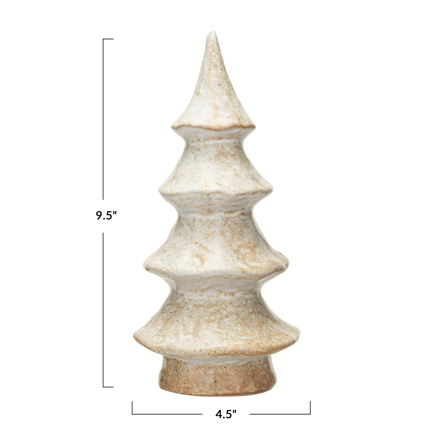 This cream stoneware tree with reactive glaze is a beautiful and convenient way to decorate for the holidays. It features a smooth and elegant stoneware tree with a reactive glaze that creates a unique pattern on each piece, making it a one-of-a-kind item. The tree has a cream color that blends well with any space and style, adding a touch of sophistication and charm to any decor. The tree is ideal for displaying on a table, shelf, or mantel, where it can be used as a standalone piece or paired with other items. The tree is made of stoneware that is sturdy, durable, and easy to clean, making it a great choice for holiday decoration. It measures 4.5 inches in diameter and 9.5 inches in height, making it a subtle and attractive centerpiece. Elevate the holiday decor with this eye-catching Christmas tree, adding both style and a touch of whimsy. A smooth and elegant stoneware tree with a reactive glaze that creates a unique pattern on each piece. versatile and classy addition to any holiday decor, this tree suits any space and style. Ideal for displaying on a table, shelf, or mantel, this tree decor can be used as a standalone piece or paired with other items.