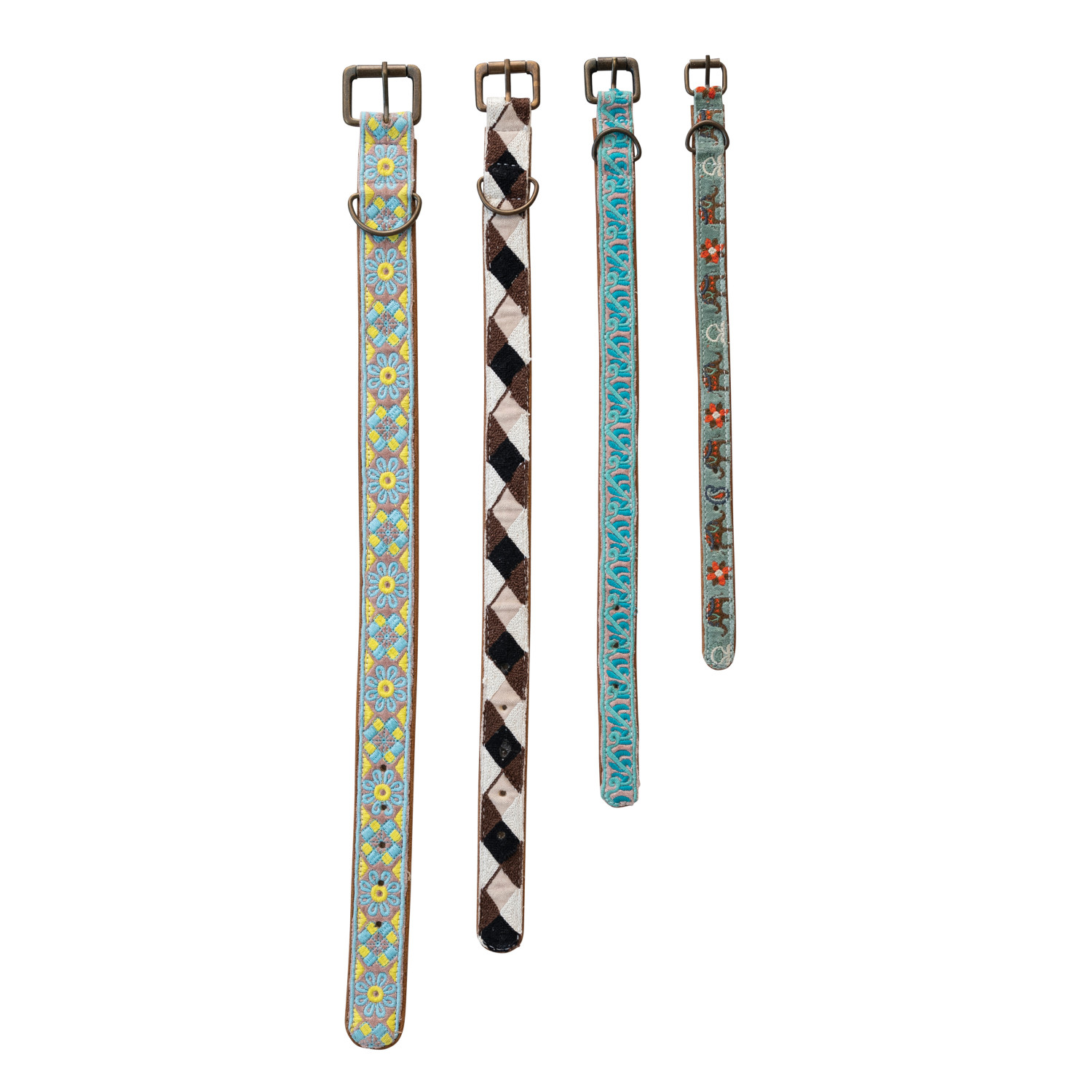 Catalog Name: 19"L x 1-1/4"W Cotton & Leather Dog Collar w/ Embroidery & Metal Buckle, Multi Color, 6 Styles, Small