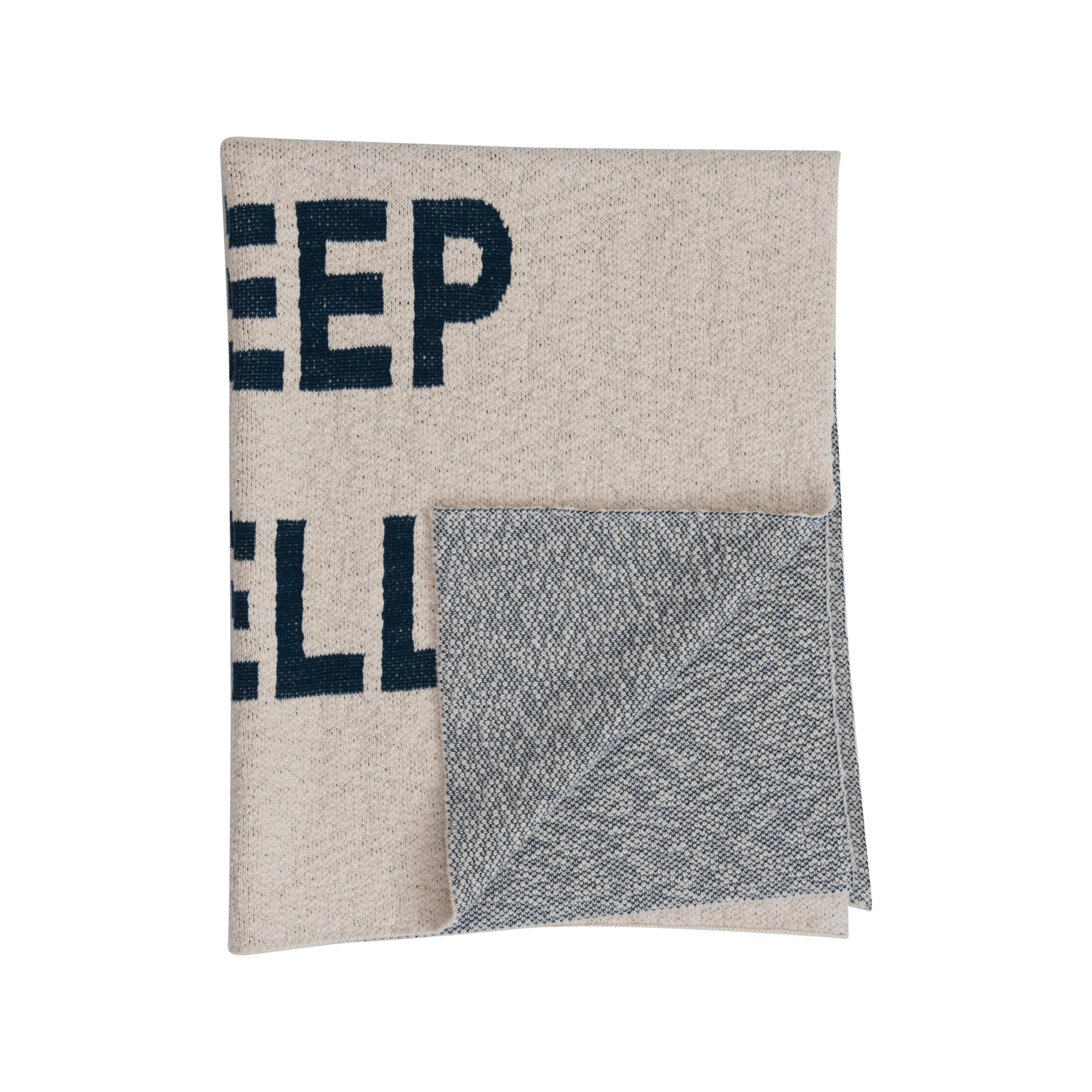 This charming baby blanket features a sumptuous cotton construction with darling "Sleep Well" print. Navy and natural "Sleep Well" printed cotton baby blanket. Add a touch of stylish warmth to a nursery with this luxurious throw blanket. Machine wash warm, gentle cycle, do not bleach; Tumble dry low, warm iron if needed or hand wash.