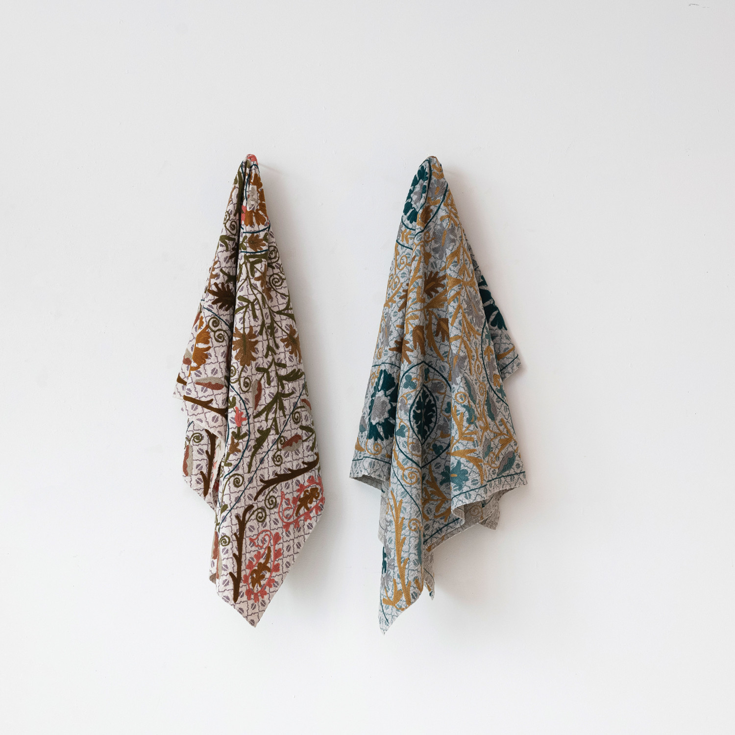 Stonewashed Cotton Printed Voile Throw w/ Hand-Embroidered Kantha Stitch