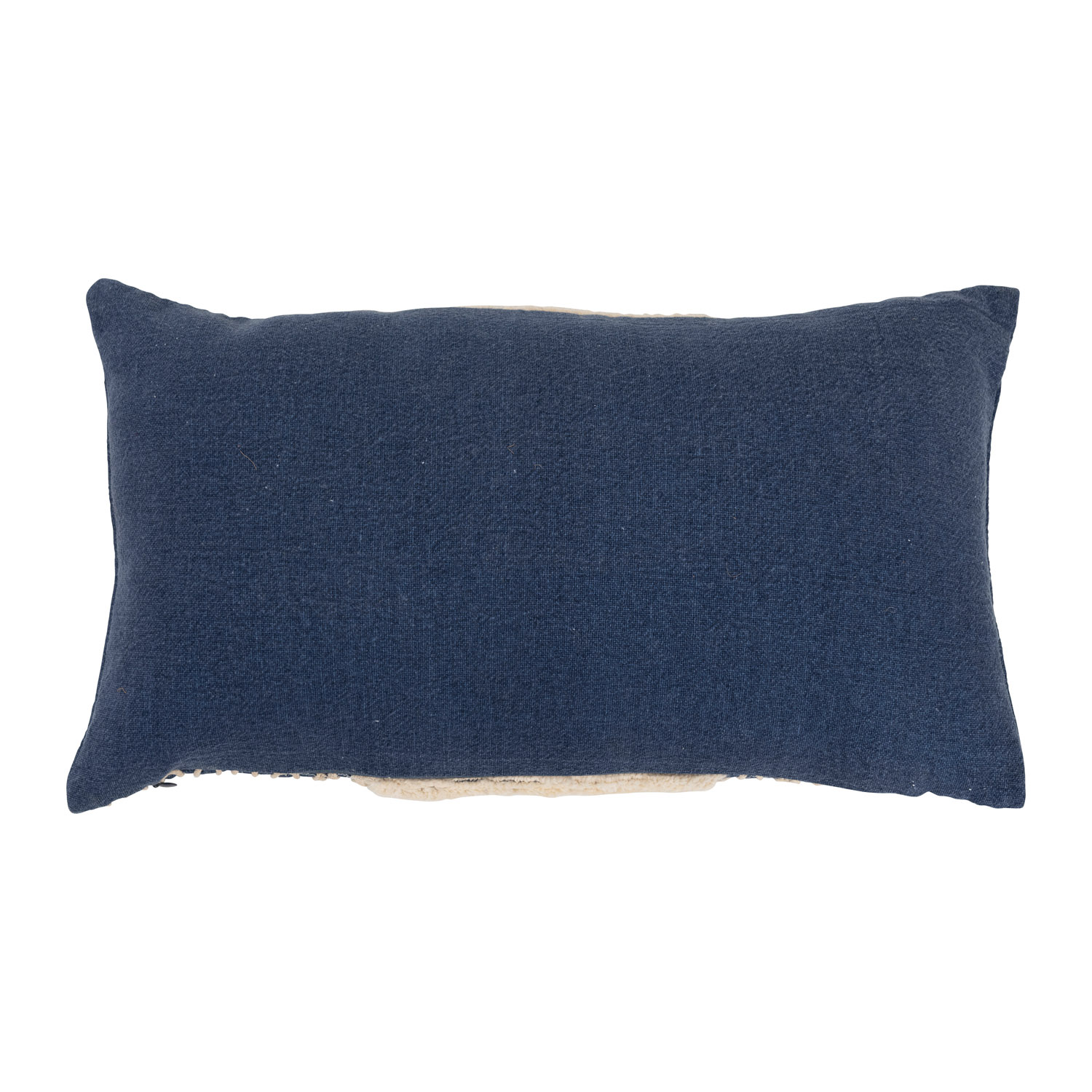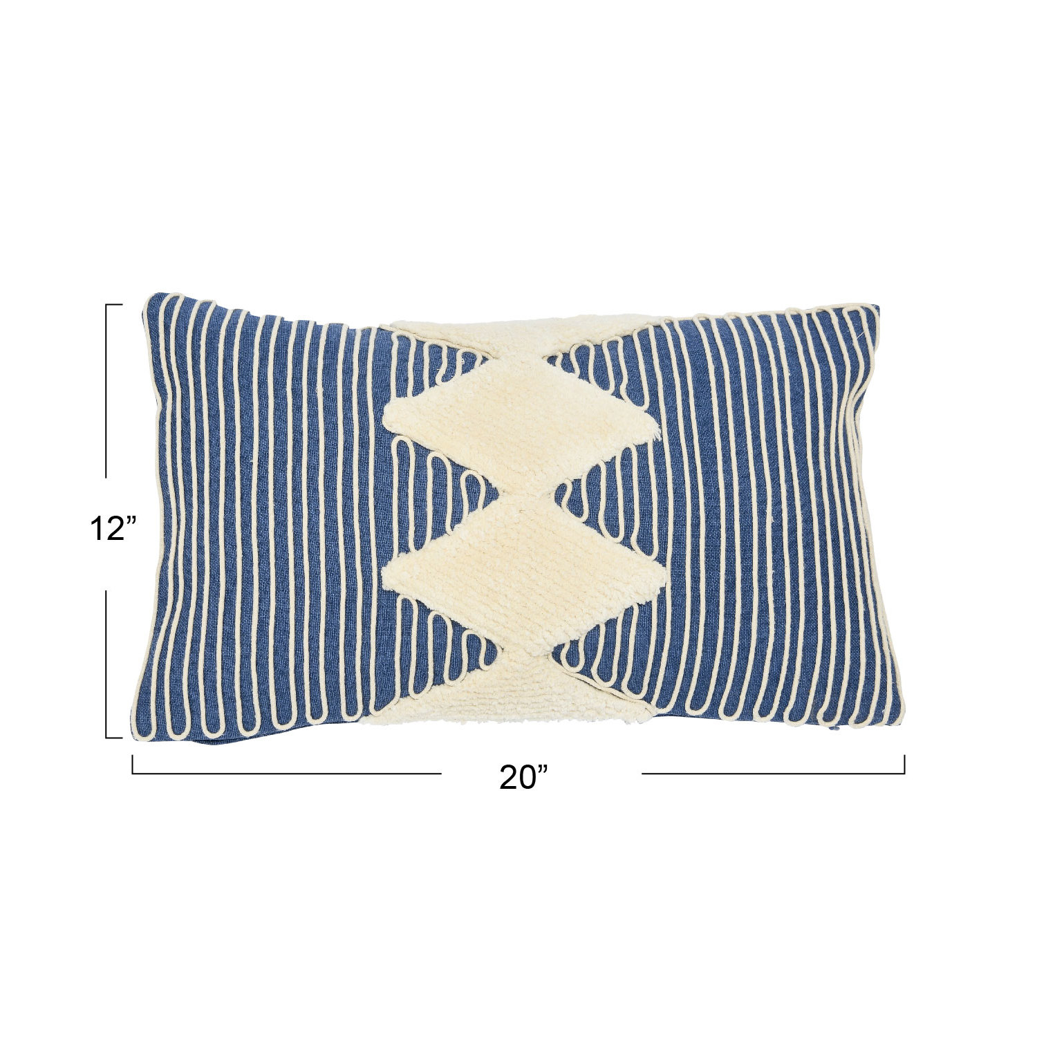 Catalog Name: 20"L x 12"H Cotton Tufted Lumbar Pillow w/ Embroidered Rope Stripes, Blue & Cream Color