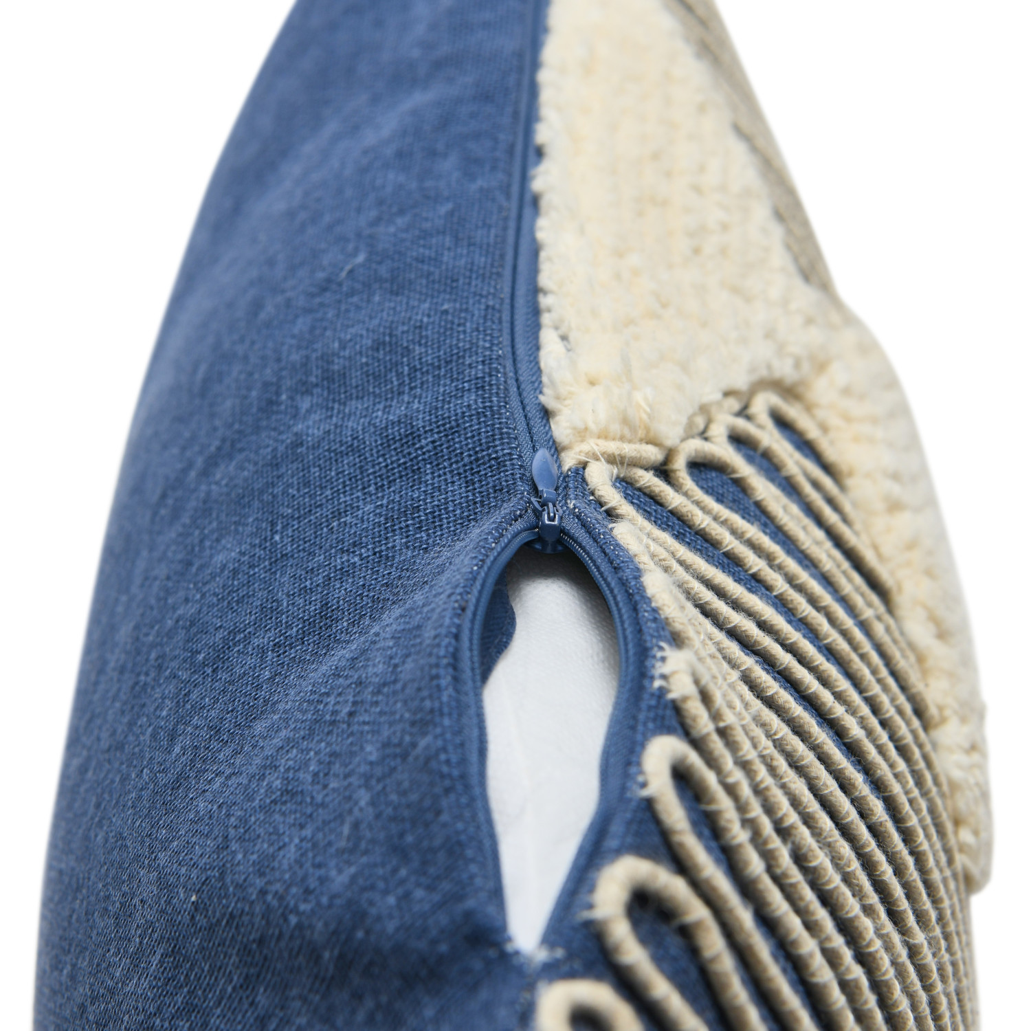 This playful cotton lumbar pillow features intricate, tufted embroidery and textural rope stripes. Blue and cream cotton lumbar pillow with tufted embroidery and rope stripes; Tonal cotton encasement on back. Express your constantly evolving style with the simple addition of this eye-catching pillow. Removable cotton lumbar pillow cover and insert; Hidden in seam zipper closure; Hand wash, medium iron from reverse, do not bleach, do not tumble dry.