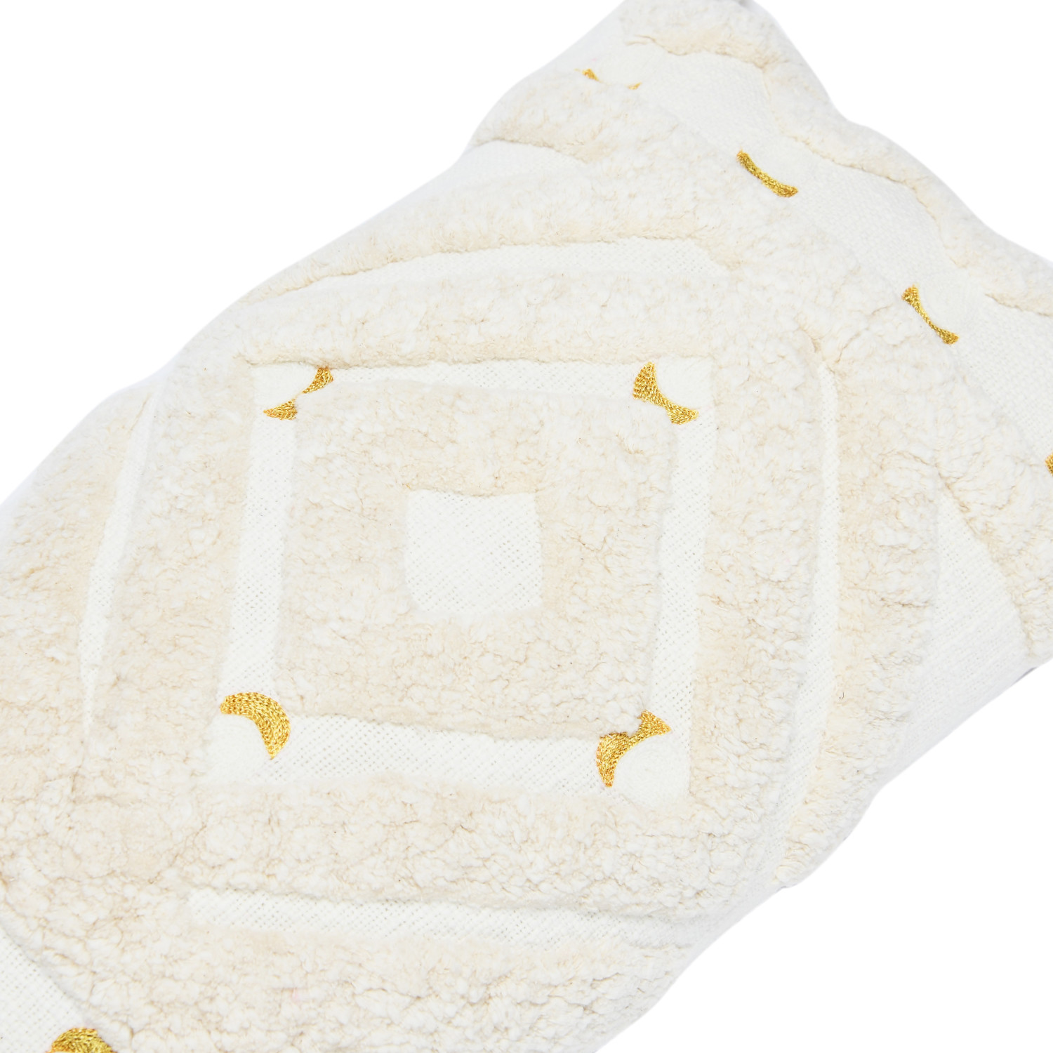 This playfully bohemian lumbar pillow showcases a tufted geometric pattern and half-moon embroidery on cotton, finished with decorative tassels. Cotton tufted lumbar pillow with embroidery and tassels in cream and gold; Cream cotton encasement on back. Express your constantly evolving style with the simple addition of this eye-catching pillow. Removable cotton lumbar pillow cover and insert; Back zipper with hidden flap; Machine wash with mesh bag.