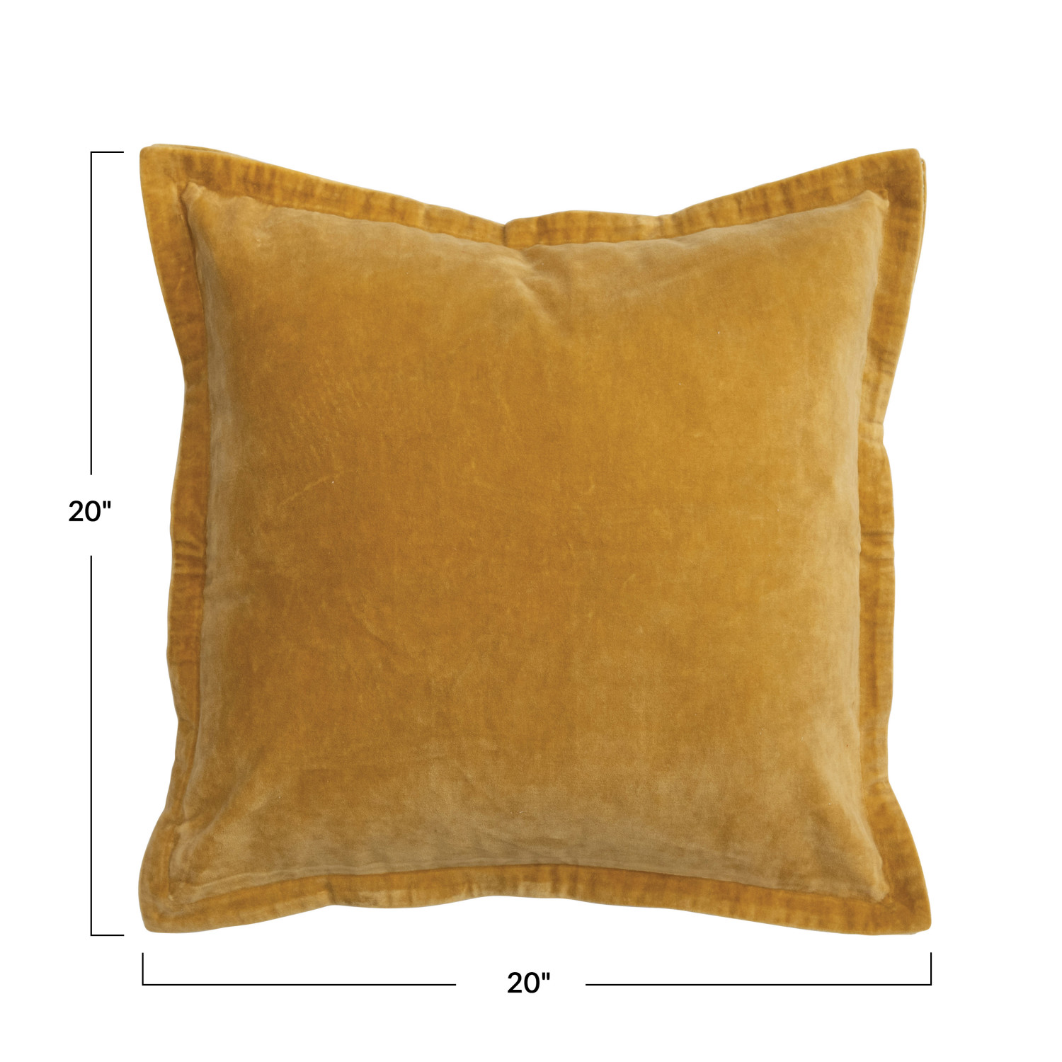 Catalog Name: 20" Square Cotton Velvet Pillow w/ Patterned Flanged Edge, Polyester Fill, Mustard Color ©