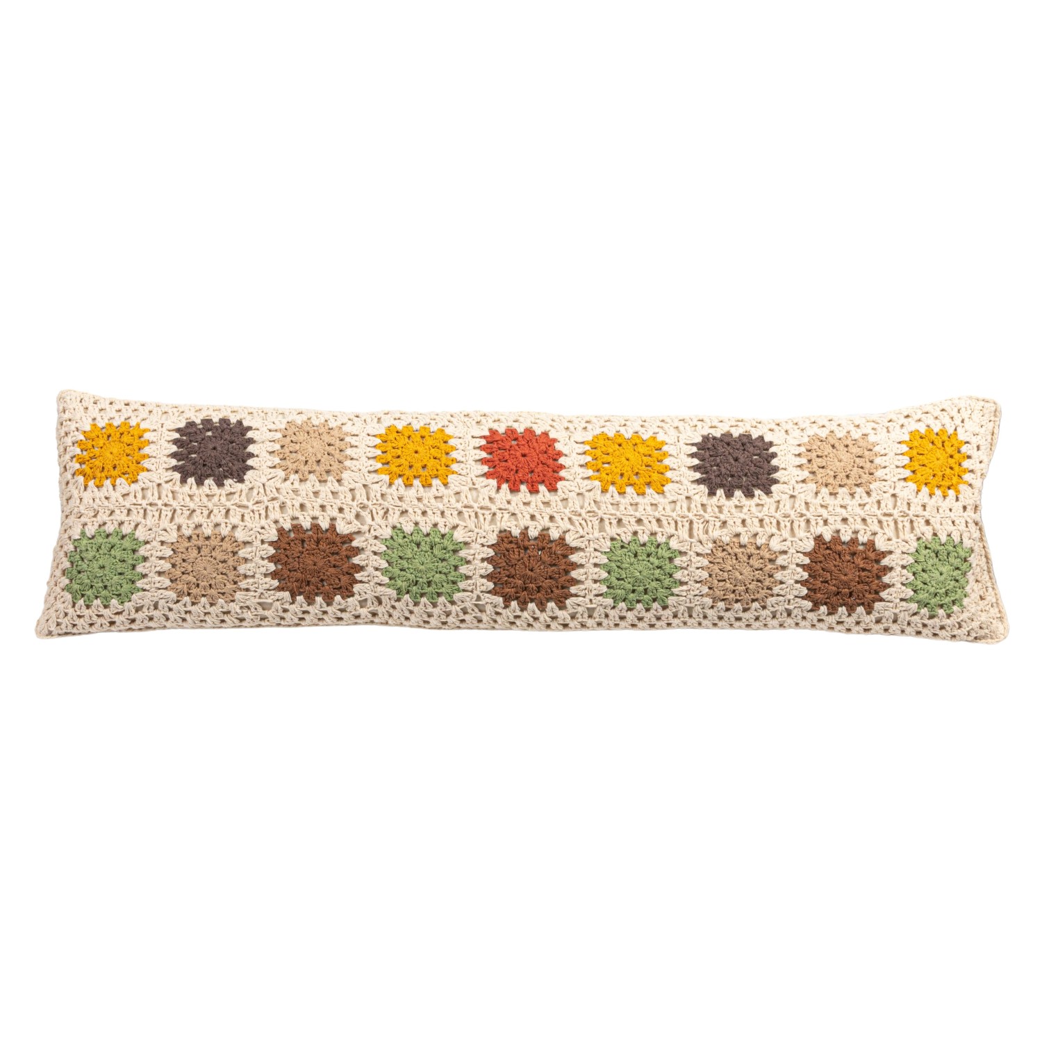 Catalog Name: 36"L x 10"H Cotton Crocheted Granny Square Lumbar Pillow w/ Block Pattern, Multi Color