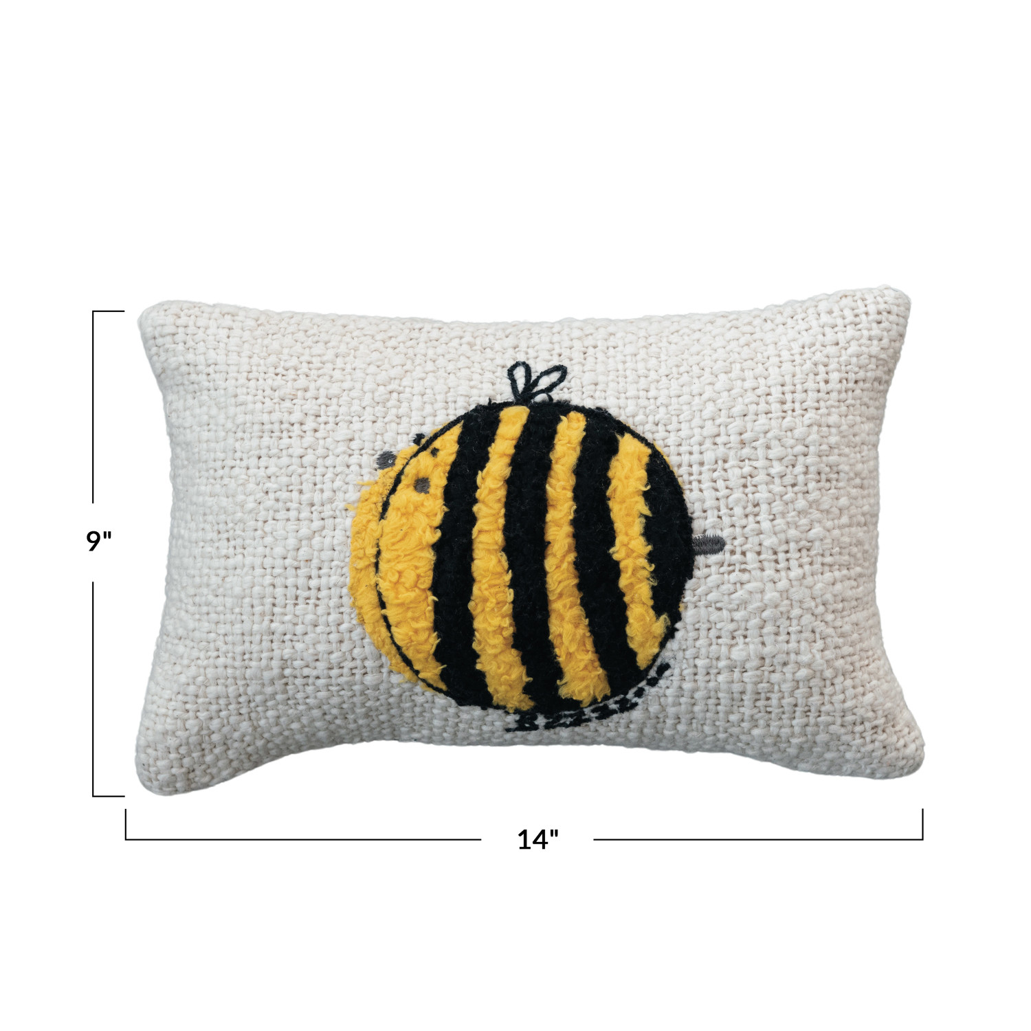Catalog Name: 14"L x 9"H Cotton Slub Lumbar Pillow w/ Embroidered Tufted Bee, Natural, Black & Yellow
