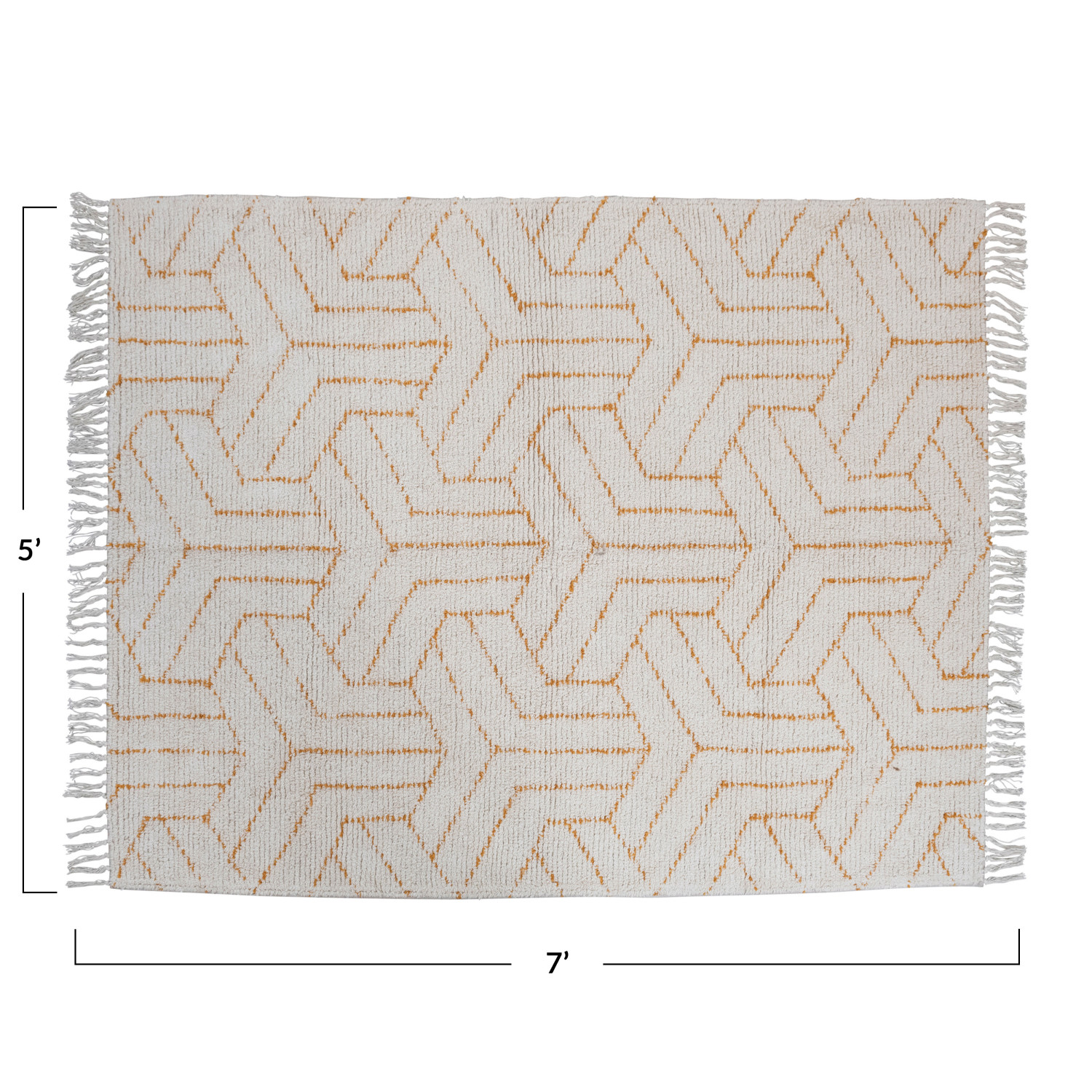 Catalog Name: 5' x 7' Stonewashed Cotton Tufted Rug w/ Geometric Pattern & Fringe, Cream & Mustard Color