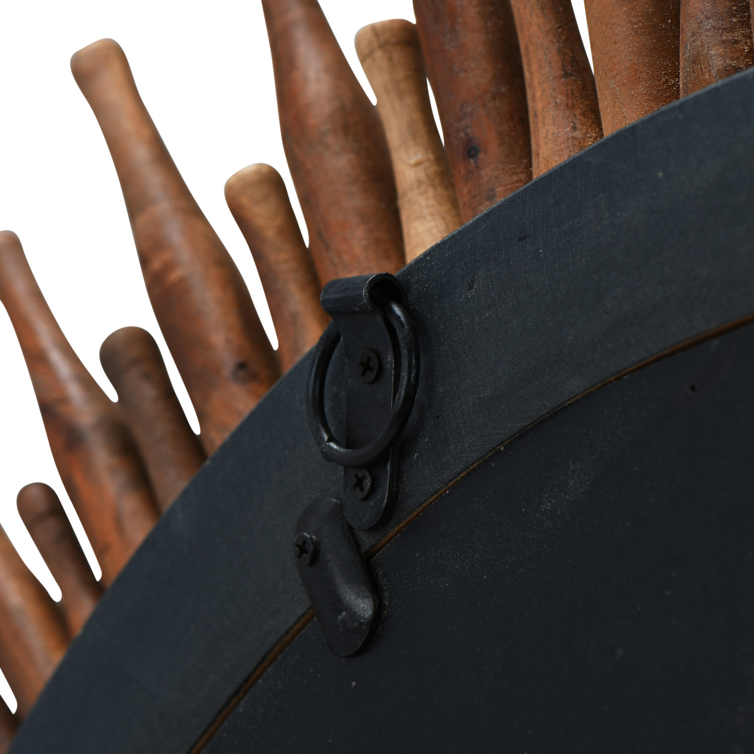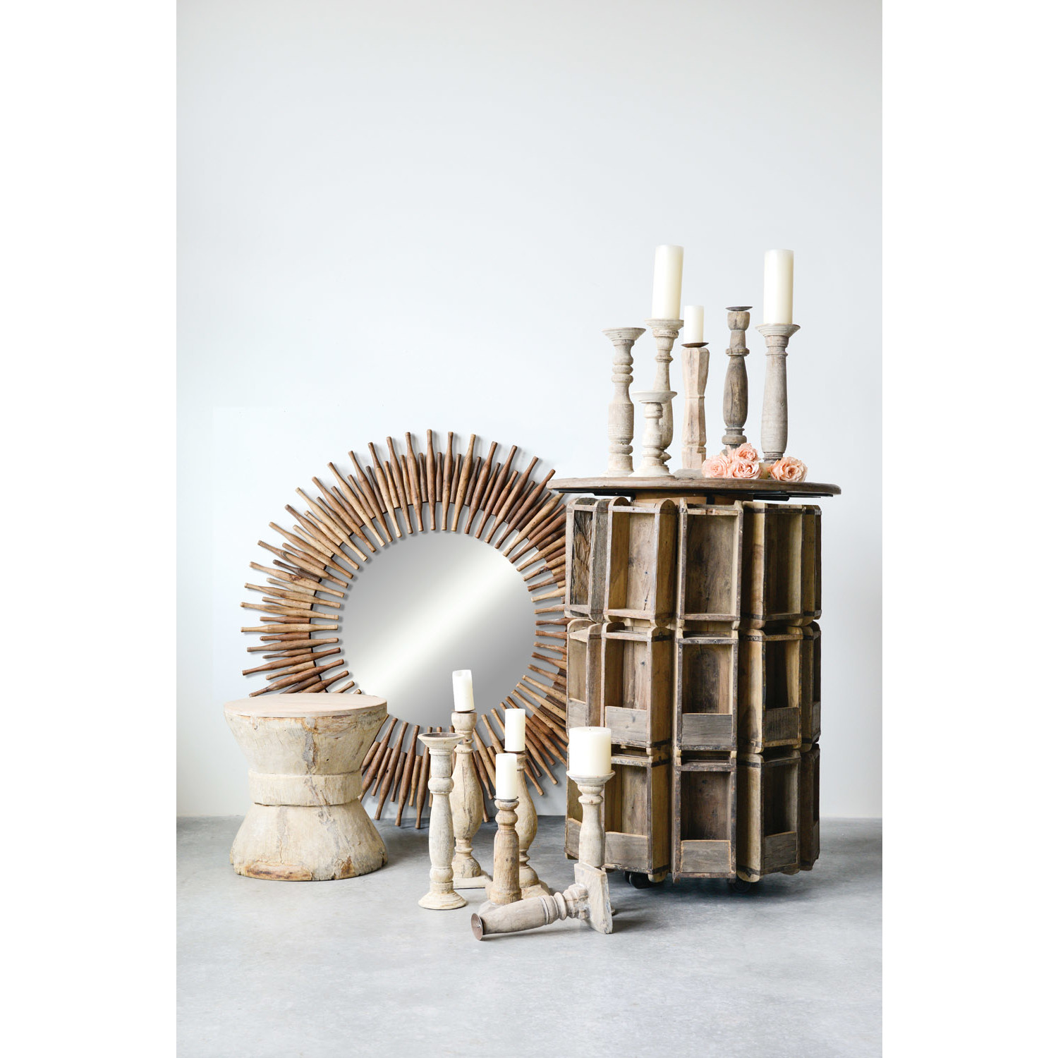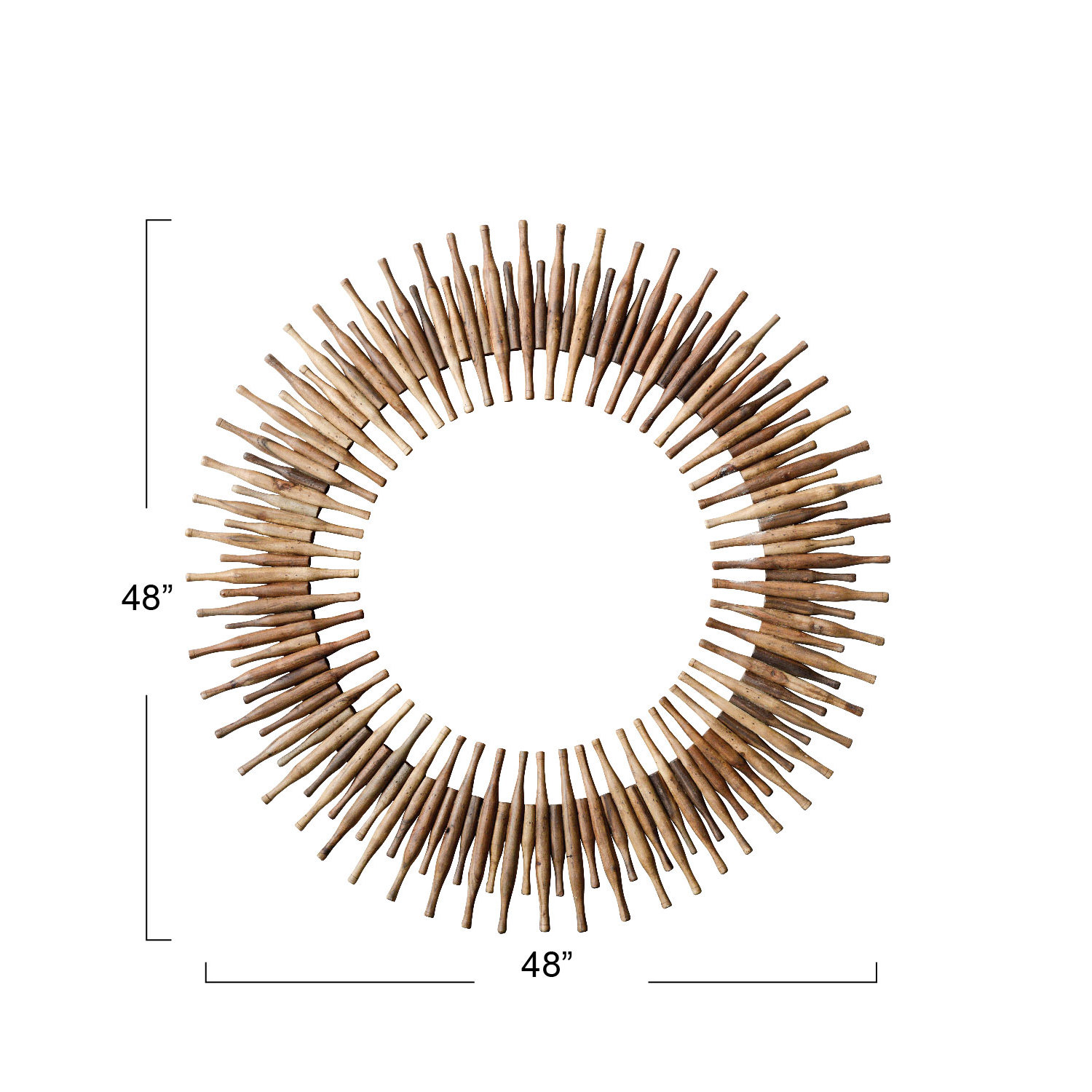 Catalog Name: Approximately 48" Round Found & Repurposed Wood Roti Pins Wall Mirror, Truck Ship (Each One Will Vary)