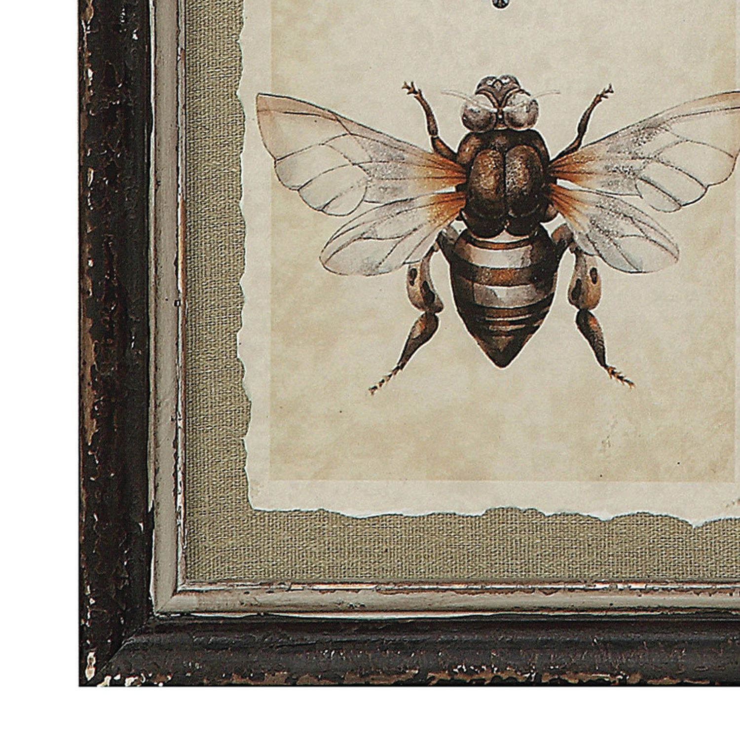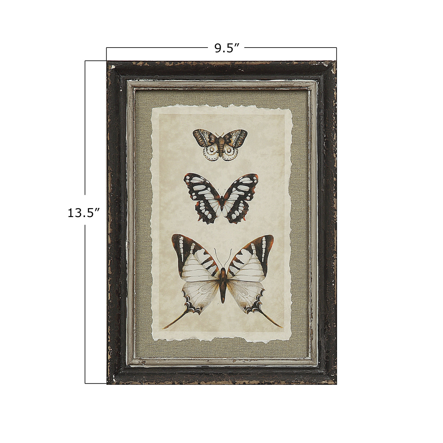 This set of prints features a various array of insects. They have distressed frames and beautiful matting. Place them in a group or spread throughout the room.