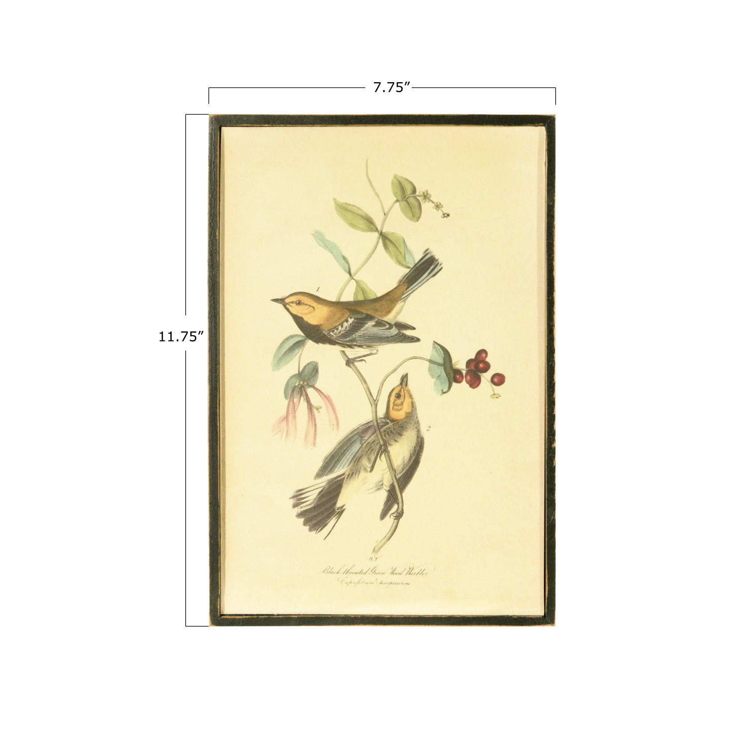 Catalog Name: 7-3/4"W x 11-3/4"H Wood Framed Wall Décor w/ Vintage Reproduction Bird & Flower Print, 4 Styles, Truck Ship
