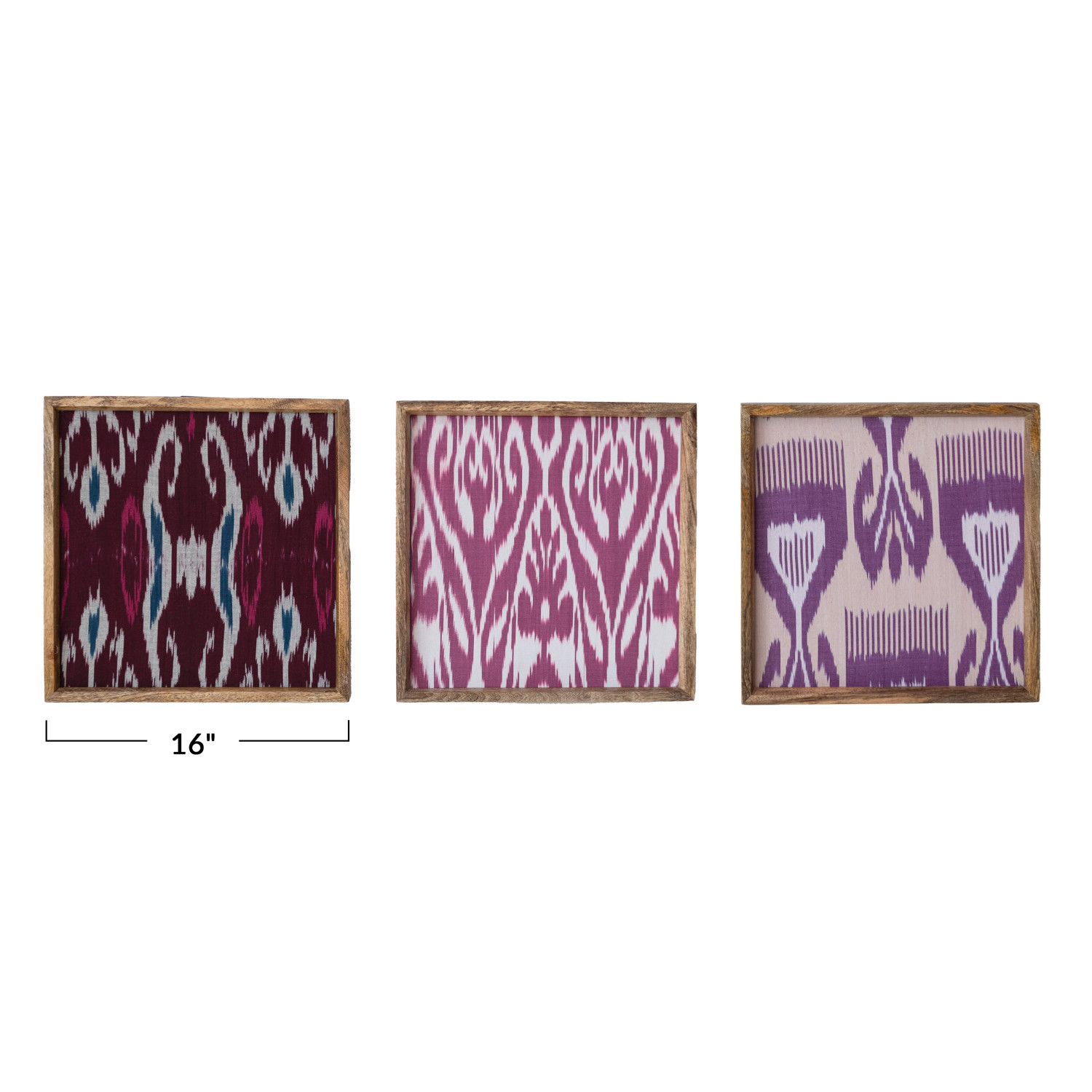 Catalog Name: 16" Square Mango Wood Framed Found Cotton Ikat Wall Décor, Multi Color (Each One Will Vary)