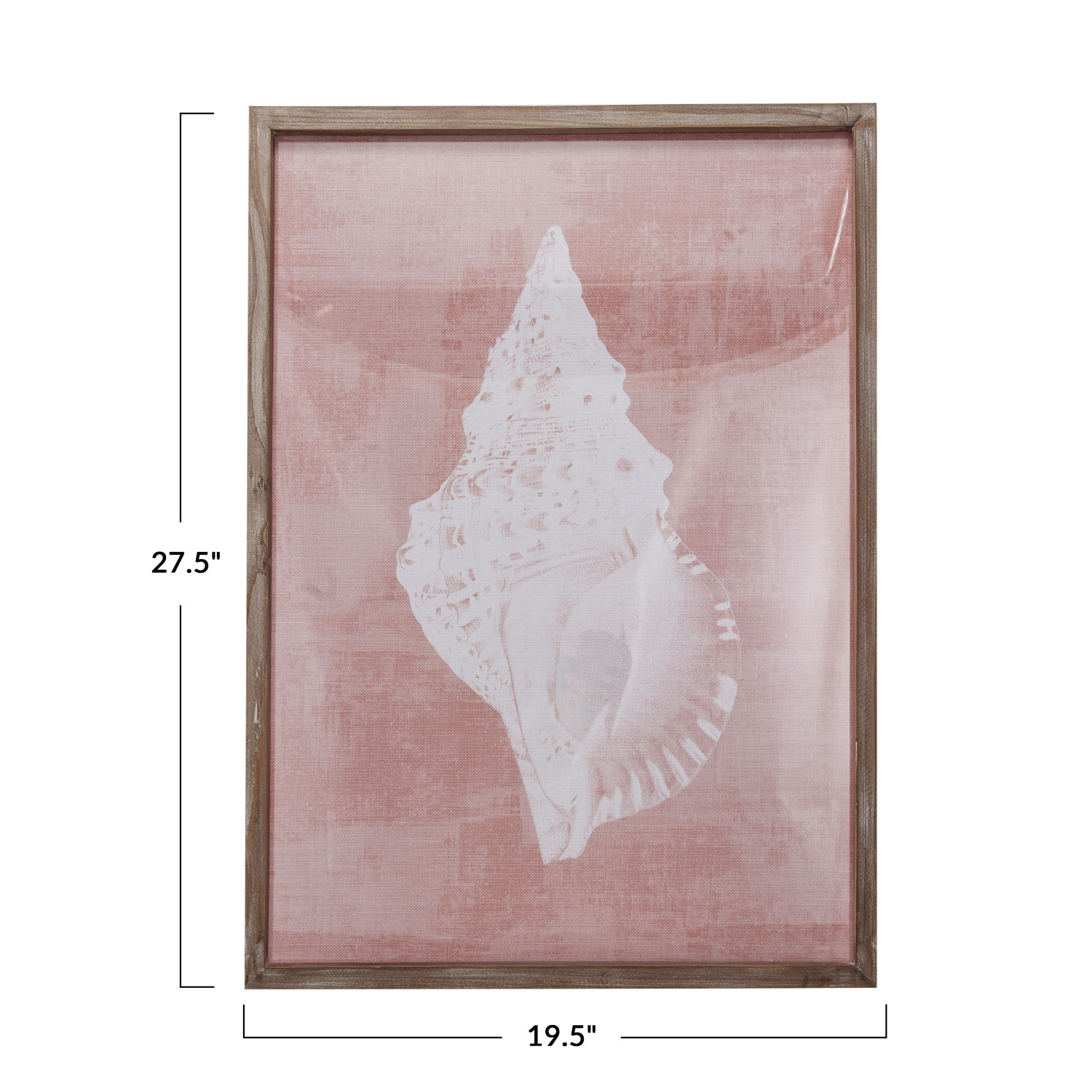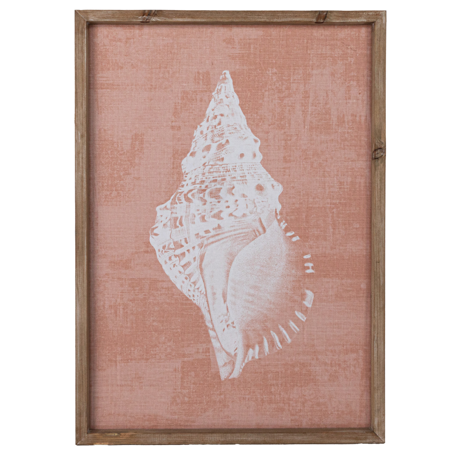 Catalog Name: 19-1/2"W x 27-1/2"H Wood Framed Glass Wall Décor w/ Conch Shell Image, Coral Color, White & Natural, Truck Ship