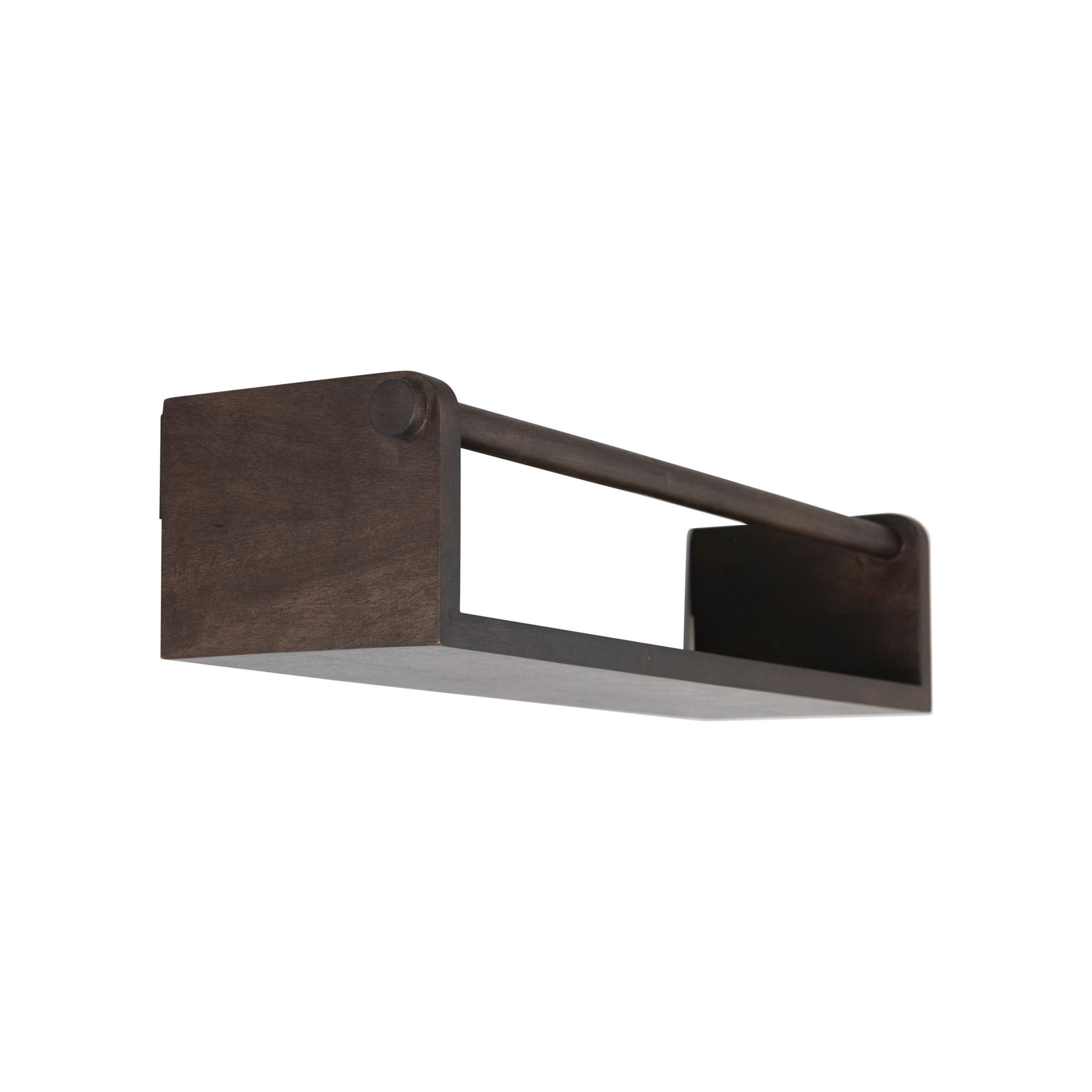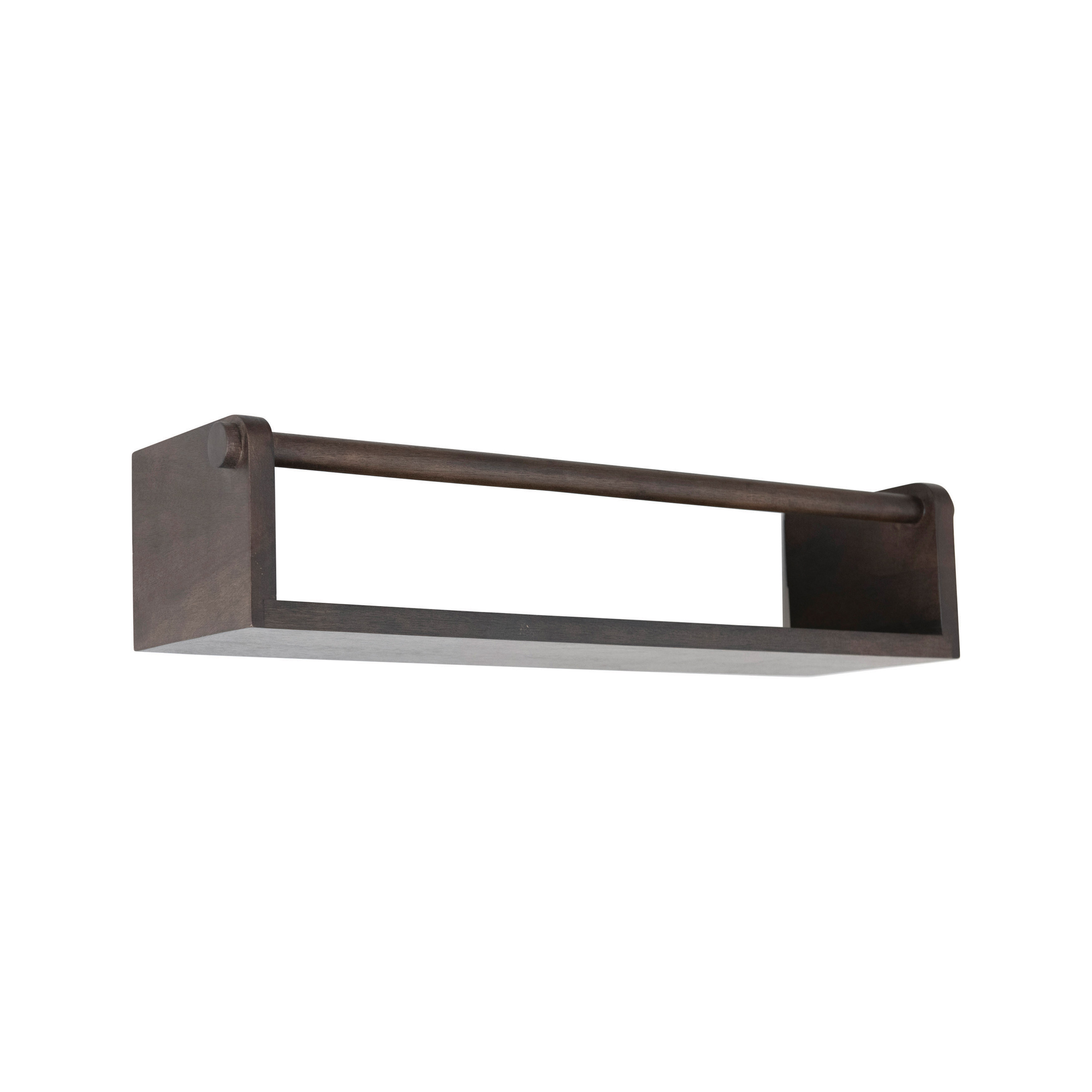 This sleek wall shelf showcases masterfully crafted mango wood with a stylishly functional rod. Mango wood wall shelf with rod in espresso finish. Display this stunning piece to stylishly store anything from household tools to decorative accents. Made from 100% mango wood.